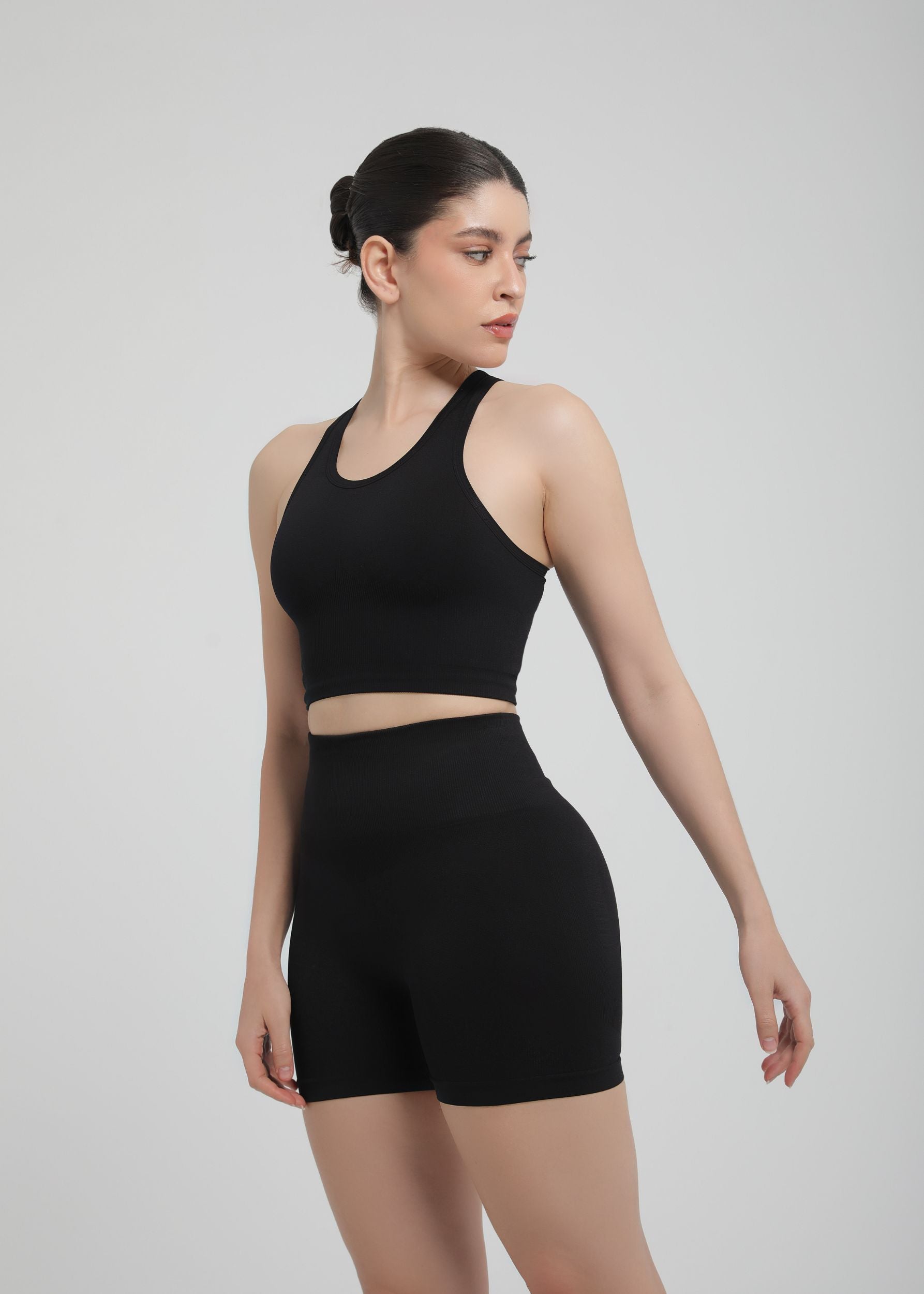 مشد رياضي فعّال يُنحت ويدعم. يُضفي لمسةً من النعومة، ويضغط على الخصر.