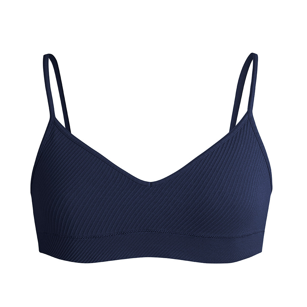 - Minimal bralette silhouette with a clean V-neckline
